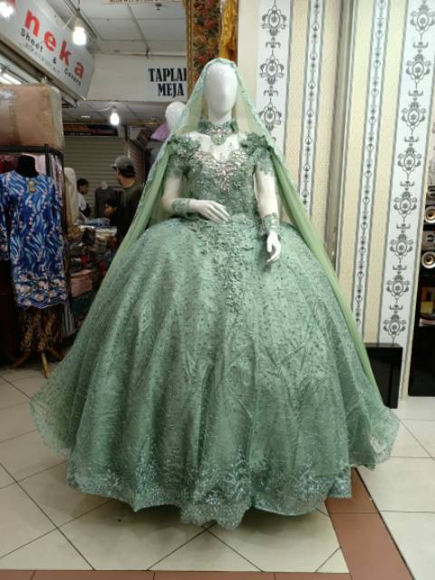 Gaun pengantin hijau army murah sale · rp1.850.000.